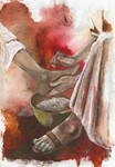 2008Een eerbetoon aan Leonardo da Vinci.Dit is mijn interpretatie van het Laatse Avondmaal. Jezus wast de voeten van de discipelen.
